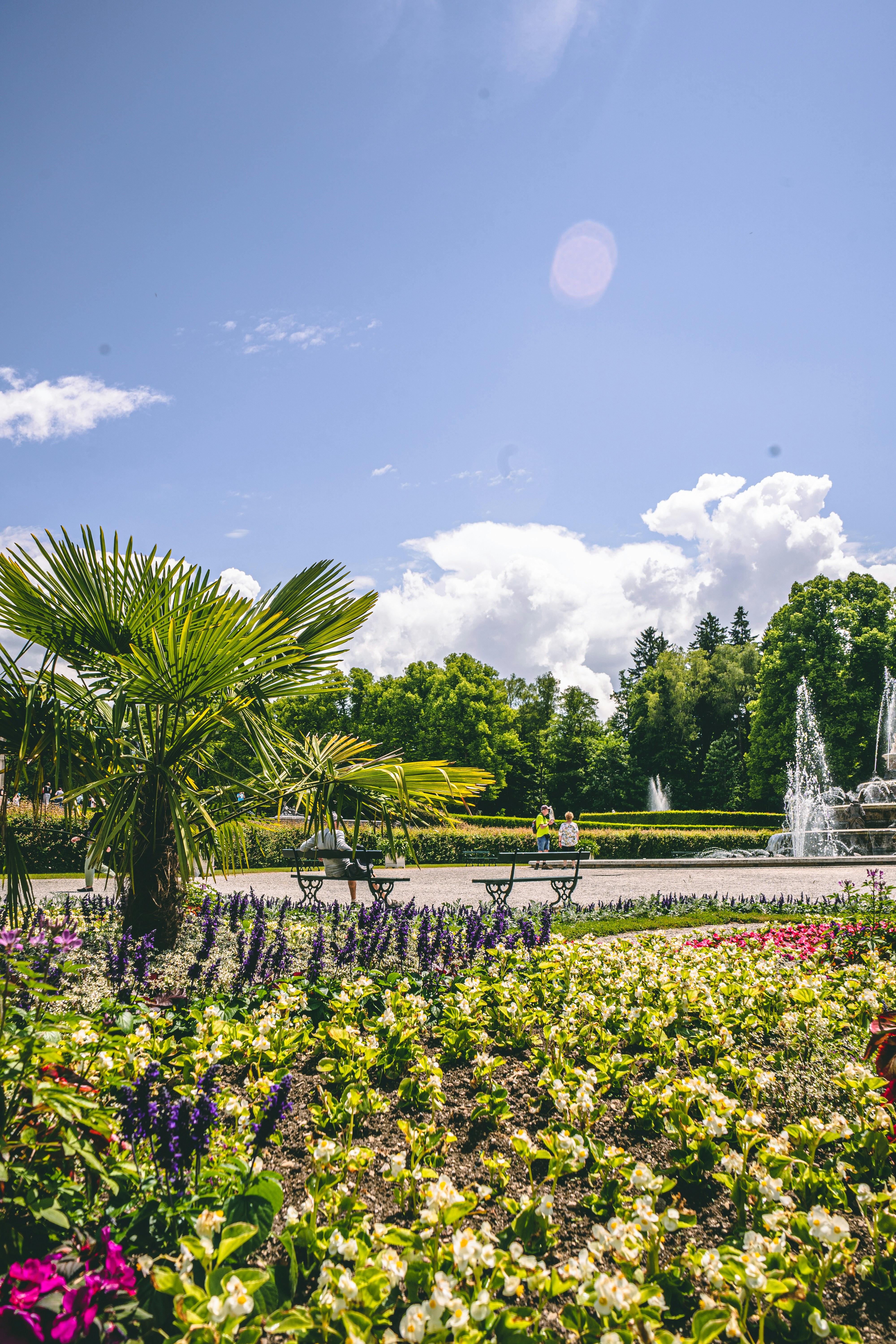 Springvand fungerer som smukke midtpunkter, der tiltrækker besøgende og tilføjer en kunstnerisk dimension til parken.